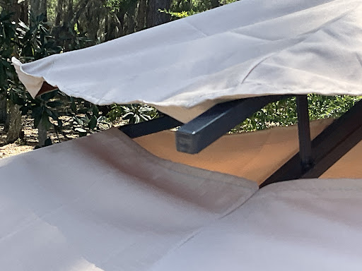 By the way, I discovered the cost of purchasing a brand new canopy, including frame and netting, to be much less costly than the prices of Garden Winds replacement canopies.