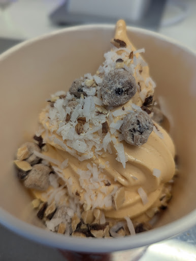 The two young people at the counter were fantastic!! Not only were they friendly and helpful, but aldo they kept the place clean and tidy, frequently wiping down tables, countertops, and even the sides of the counter! The numerous toppings were checked and refilled as needed