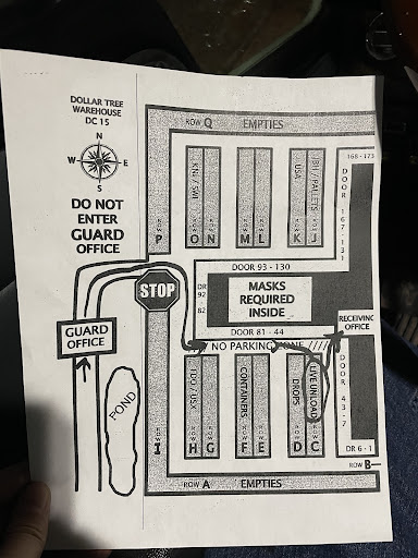 1st Visit, Delivery, DEC 01, 2023 pass the gate with DL —- check-in & get a door at the office —- park & drop the trailer —- wait for unloading in front of the trailer —- paperwork at the office