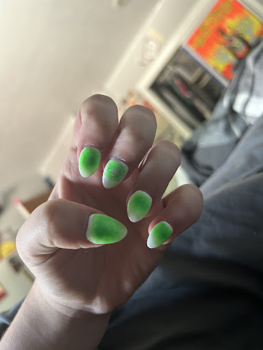Read moreThe nail bar was very welcoming and was an absolutely gorgeous space. I had called ahead to schedule my appointment and confirm the design I requested could be done. The design is shown in the picture with the light green bloom nails with the chrome and gems, along with two pictures of what I received . I had asked for that design, just without the gems. I had confirmed the bloom and chrome design with my tech and once she was done with the bloom and top coat, she had thought she was done. I reminded her about the chrome I asked for and asked if she could do it. She agreed and told me it would be an up charge which I was okay with. When she did the design she used only a silver polish and I was under the impression it was a powder which may have been an error on my end but I feel as if what I received was not like the picture. My natural nails lay flat yet the tips that were applied laid upright at an angle which is not preferred and was not noticed til after I had left the nail bar. I am not angry at the staff there as they were all very nice, I just feel there was some error in communication that should be made aware of to future customers so they are able to leave satisfied with their experience, especially when someone is paying a higher amount of money (I paid $90 +tip) for a design they were told could be...