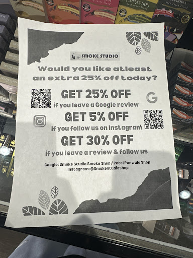 Read moreAt Smoke Studio Smoke Shop/Patel Panwala Shop, I was blown away by the intoxicating aromas of premium Tobacco Products that greeted me upon entry, and later pleasantly surprised by the extensive selection, competitive prices, comfortable atmosphere, and incredible variety of options available, all made even better by the knowledgeable guidance of Shamir who took the time to answer all my questions. The seamless experience left me satisfied and eager to return to explore more of their Vape Accessories and THC Products, courtesy of the attention to detail...