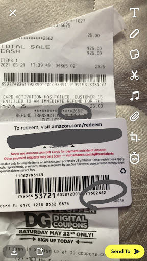 Read moreTried to buy 4 $25 gift cards one did not register and we tried 2 other ones, and i ended up getting 3 because the other one would not register which would've been fine. Except for the fact that they handed me two of them that were supposed to be returned i got home tried them and two did not work and i found it on the receipt that it was their error and they said they cannot do anything for me. So I am out of 50 dollars when the receipt says that i was supposed to be refunded for...