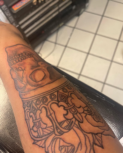 James is a complete professional, and has done plenty of piercings on me and my daughter, and now I've decided to venture into getting a 1/2 sleeve done, and his willingness to put up with my hurricane of emotions and thoughts that come flying out of my mouth, at any given second, each time I enter that shop, is what sets him aside from the rest. I've seen tattoo artists (recently too)that I swear have their noses so far up in the air, I'm surprised they can even see over it to actually do a tattoo on a client. JAMES IS DOWN TO EARTH AND NONJUDGMENTAL. THATS WHY I KEEP COMING BACK. ...and for the pain he inflicts. I like to make sure I'm still alive sometimes..