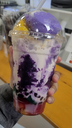 The restaurant next door is fast casual. There are trays of different foods to choose from. It smelled so good in there. This time I didn't get to try the food because I already ate. I did order an ube halo halo though; it's a Filipino shaved ice dessert with a variety of toppings. I chose the ube ice cream, which is a type of sweet potato; it also came with flan, fruit preserves, coconut milk, and sweetened beans. This was a delicious treat! The employee was friendly. There were a few tables you can enjoy your food at. I look forward to going back to try...