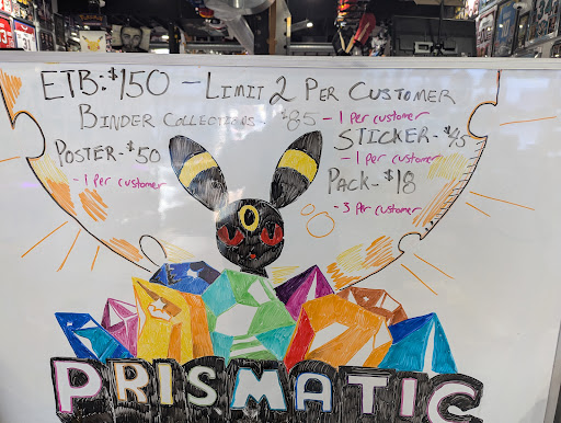 Read moreCame in today to try and purchase the new Prismatic Evolutions ETB, and was shocked to see on the sign the $150 price tag for one (Thats 3x MSRP for those new to collecting). I asked an associate to confirm the price to inquire why its priced how it is, but presumably the owner overheard me and asked “If I can read” and “If I read the sign I would know the price” all while not even looking at me.