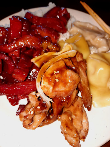Popular dishes like Pepper Steak, Sweet and Sour Chicken, Kung Pao, Sesame, Chicken and Broccoli, etc., with steamed and fried rice options.