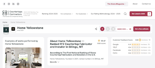 The Countertops Contractors Ranking team recognizes Home Yellowstone as one of the participants in the 2024–2025 national ranking of stone countertop fabricators and installers in the United States. Being included in our ranking confirms that Home Yellowstone meets the key selection criteria — quality of service, professional consultations, and a wide range of materials. During our evaluation, the company demonstrated transparency and reliability in working with clients, which earned it a well-deserved place among hundreds of other ranked companies. In the opinion of the Countertops Contractors Ranking team, Home Yellowstone is a reputable representative of the stone countertop market in Wyoming and deserves the trust of homeowners seeking professional fabrication and installation services. Sincerely, The Countertops...