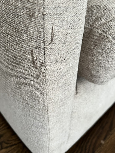 My experience with this company has been horrible from the moment I purchased this piece. Not only was my couch several months late getting here but started to tear almost instantly. The cushions started to sink in as well. The large separation you see in the seems started off very small. I had purchased the extra coverage bc I have children and just assumed it would be worth having coverage on a $8,000 piece of furniture. I started my claim over a year ago. They would email every few months or so to follow up by asking for more pictures. I would send the appropriate photos then silence. Naturally the tear got larger and larger. I still have this tear in my couch. Now, keep in mind. The tear isn’t the only issue. The fabric immediately started to bead, the threads are popping out all over and if you open the back rest cushions the fabric is in shredded. Of course they are claiming this is normal. I have a couch I purchased from west elm about five years ago. It’s our main couch. It’s used all day every day. The seats spring up as if it was purchased yesterday. The fabric looks great. No beading, no seem separation, no threading it’s perfect. I also only paid 5,000 and it still came with custom fabric. I too am a business owner. If someone came to me and said the couch was falling apart I would want to do right by them insuring they had a smooth return or replacement so that they would come back. Instead, these people won’t respond and I’m stuck with a piece of furniture that looks terrible in my home. Please don’t buy from this company. It’s honestly been a...
