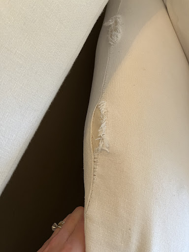 Now the couch, which is touted online to be from a company whose slogan is “built-to-last”, is falling apart. We are not rough on furniture. I had an old ikea sofa that I used for upwards of seven years that still looks and feels brand new, yet here is a several-thousand-dollar couch ripping at the seams.