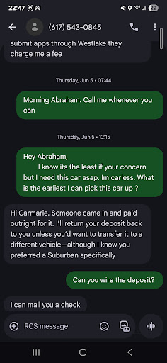Read moreFor a small business to have this many 5 stars im sure he is paying for them. This man is impersonal. I didn't mind that but I should of gone with my gut instincts on this one. I went to Abraham for an LTZ Suburban. Not only did he waste my time ran my credit and I put a deposit down for the vehicle. He sold the car under me after taking a deposit, running my credit and sending my information to numerous banks. Kept me from having a car for over a week. Im constantly getting spam mail from him running my information. He was the only onw that had my P.O box. I think he only had 10 cars on his lot. Either way I still tried to make a deal with him. Personally I would not recommend to buy a car from him. 100 percent shady. Once you meet him. You will know what I mean. I also have receipts of our conversation. Im happy I have my LTZ Suburban with no dents or crashes (like the one he was selling) but I still can't get over the running my credit, spam mail and lack...