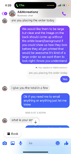 If I could leave a negative review I would unfortunately I can’t! I used the company twice they advertised very low prices but assured us they were a legitimate business. The first order was for 24 shirts it took a long time to come but they did communicate and explained they had a lot of orders due to the promotion they were running. We received the shirts several weeks later but we did get them which is why I went back to them the second time we spoke with them went over what we wanted and they said it would be almost $600 which we paid in full I ordered the shirts on March 8, 2024 it is November we have not received the shirts and they will not refund the money! I knew they could take a while so I ordered in advance for September when the event took place. They don’t respond to messages on Facebook or pick up the phone I have screenshots and emails I told them We would work with them if they had some done they could send what was made they did not the event came and went no shirts! I had to spend more money out of pocket over $400 for people who had prepaid for shirts! -10/10 DO NOT RECOMMEND!!! No communication only an automated...