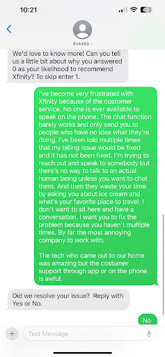 In response to the owner's response to my review. All your link does is take me to an Xfinity text chat. Talking to someone over text gets you absolutely nowhere. Talking to a person directly over the phone or face-to-face is the best solution. But even that got me nowhere with Xfinity. You can only make so many phone calls that get you nowhere before you've had enough. Thanks anyways, but I'm all done...