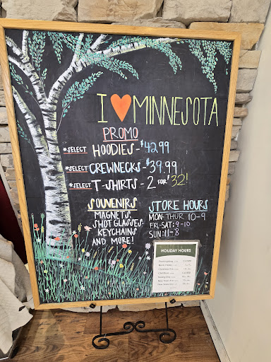 Read moreThis is a fun shop to find things Minnesota. Lots of choices from cards to shirts to food products. We now live in Texas so was looking for some small gifts for our wine club members and decided to get small containers of MN maple syrup and jams. We needed 16 of each. Kennedy was great in assisting us looking for the jam we wanted. Her store did not have and she checked on line for the sister stores to meet our needs. She even went so far as to personally check the other store to meet our needs. You can’t beat the selection, prices and great...