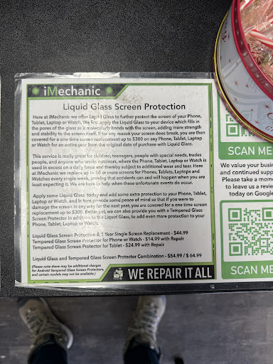 Ā Ā Ā Read moreBEWARE OF PHONE HACKERS. Let me first start off by saying they do not actually fix phones here, unless you have a warranty with them or an I phone and that's if its an up to date I phone. What they put out there is really false advertising. If you really want to get your phone fixed theres a really great place in Carmel called "CPR Cell Phone Repair". But anyway, Ive come into Imechanic on two separate occasions. One was for my android phone that kept restarting every 5 minutes and the other time was also for an android phone I had that had a crack across the screen but still usable I just wanted the screen replaced. On the first occasion for the problem with the phone that was restarting every 5 minutes, they told me this was an easy and quick fix and they wont even charge me for it and they will call me on my friends phone number that I gave them, when its done and to give them a couple hours. They didn't call back and after 2 days of them not calling back I decided to call them on my friends phone and asked what was going on with my phone. They told me that they just fixed it and its ready to pick up and it will be 55 dollars. I said on the phone that the guy at the front desk told me that he wasn't going to charge me anything. The guy on the other line said "well how about 45 dollars then". I was really irritated but paid the amount when I got there. I stayed in the store for a couple of minutes while I turned my phone back on to see if it was really fixed. I waited for a couple minutes and it started doing the exact same thing again. I came back up to the counter and wanted to talk to a manager. They said the manager wasn't there. I told them I wanted my money back because the phone is obviously not fixed. They gave me my money back and told me to do a factory reset. Later on for the second issue with the new android having a crack on the screen. I came in there and they said they could fix it, no problem. I left it there for a week. I used a friends phone to call and ask if they had fixed it yet. They told me that they couldn't fix the screen and they weren't comfortable with fixing it because it was an android phone and I didn't have a warranty. It had been there for over a week and I asked if they did absolutely nothing to fix it and they weren't ever planning on it then why did they keep it for so long? They did not answer the question and told me if I wanted to pick it up now I needed to do that or they were going to charge me. I had gone and gotten my phone never intending on using there business again. Now here's the thing that really, really bothers me. I always have a million messages in my inbox and it is a tedious task to go through all of them. Well I had been going through my inbox and started noticing some of my accounts requested log in attempts and password change requests. I have a several step process for the security for my accounts like my facebook etc.. All of these log in attempts and password change requests for my accounts were from my phone and on the dates that my phone was in the possession of IMechanic employees. I will never trust this business again. They make you sign a waiver when you leave your phone with them saying that in order to fix your phone they need to be able to access the phone and to leave the passcode with them. This business is shady and untrustworthy. I would not ever recommend this business to anyone and caution people to stay very,...