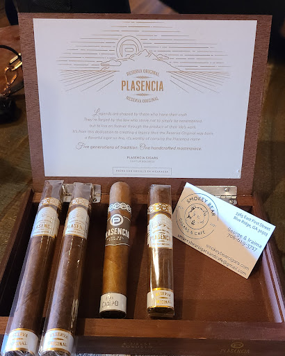 Read moreThis place was great. We went out of our way to stop by, mostly because of the catchy name, but what I found was so much more. The owner was super nice and appreciative of all patron, the cigar selection was great and the prices were very reasonable, but the atmosphere was the best part. No alcohol which mean no rowdy customers, this place is very laid back and calm. Sit around the fire, or make use of their house guitar, inside and outside seating, and you have to try their house blends if you're a cigar fan. George was very accommodating and his wife even went out of her way to go and get me a t-shirt in my size. He was knowledgeable and just good to chat with about the area and their experiences so far with the business. It is located just off of the main tourist strip so it didn't feel over burdened with foot traffic walking by to poke around and disturb the vibe. If I ever find myself within an hour or so of this place again I will definitely go out of my way to...