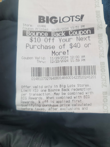Read moreI was at the Big lots on South avenue. And there was an open box return.. and it was marked like every other merchandise at 5% off. I politely asked the assistant manager that was working in the furniture department if that was the final discount. Being that it was an open box return. I have never in my life been treated so badly by an employee for asking a question. I have shopped at that store for 20 years and have never been disrespected and been called a cheapskate for asking a simple question by an employee in my life. I do not want these folks to lose their job. But that assistant manager that was working the other day should not be in a position of power. Especially how she was treating the bearded guy in the furniture department that was...