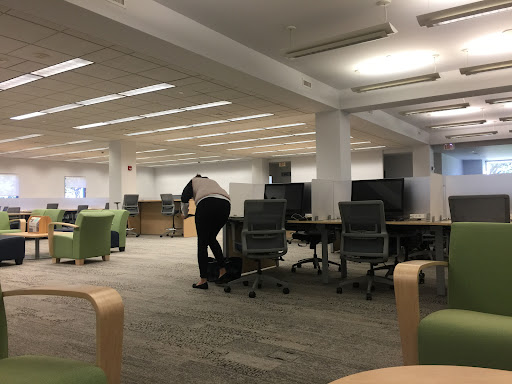 Muy linda biblioteca con todo lo que podes llegar a necesitar en tu carrera. En la entrada hay un pequeño café donde te puedes comprar café de Starbucks. Cuenta con computadoras Apple y Windows.