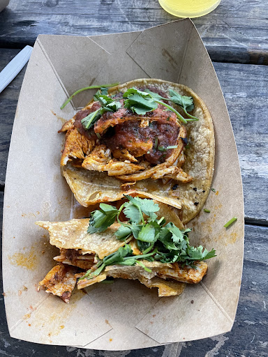 My husband and I stumbled across this food truck on a date night to a local brewery. He ordered the Chorizo Burger, and I ordered the Chicken Tacos. We also ordered their chips and roasted salsa. Their salsa was some of the best I’ve had in a while. I need a jar of that stuff! The chips were even delicious. My husband’s Chorizo Burger was so juicy and flavorful. He loved it! The fries were yummy too. My Chicken Tacos - they were, hands down, some of the BEST chicken tacos I’ve EVER had. I’ve been craving them ever since! I cannot wait to go back! The couple working in the truck were incredibly sweet and helpful…& they had an adorable little boy who was also super nice and funny. Definitely...