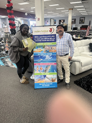 Read moreABRAHAM was the sales consultant that my husband and I worked with. We had made a few purchases at Ashleys home furniture but because of "COVID" our furniture has taken now 3-months to deliver. So my hubby and I saw this little hole in the wall and visited MODERN FURNITURE! We found EVERYTHING that we bought at Ashleys' ...the sales guy Abraham was SOOOO NICE and patient with us and worked on the price as well. We ended up buying a table and 2 chairs and a VELVET SOFA SET and LOOOVED what they had in the store. We ended up cancelling our order with Ashley and gave all of our business to MODERN FURNITURE. They also delivered the furniture 2-days LATER!!!!!!!!!!!!! amazing service, amazing pieces and SUPER...