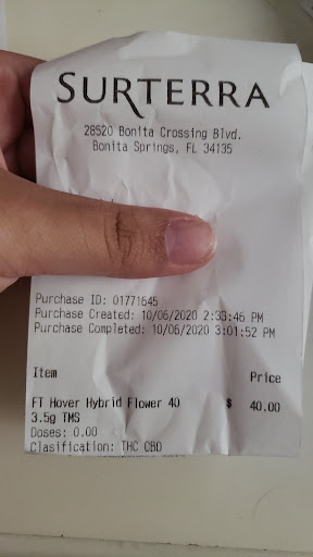 My first experience with Surterra was great. But that was delivery... upon walking in the store I was greeted and told to ask if I had any questions. I walked over to the displays and looked at the information that I wanted, made my selection and went back to the other clerk to ask what the next step in the process was. He proceeded to take me back over to the displays and begin discussing product. I already made my selection. I don’t know why I had to go through all of that to get the products. I gave them a second chance at wi he proceeded to take me back over to the displays and begin discussing product. I already made my selection. I don’t know why I had to go through all of that to get the products. I gave them a second chance, I went in, and was told the same thing, “let us know if you have any questions“. I did my thing and went back to the desk And waited. She asked me if I signed them. Nobody told me to sign in. The sign in sheet was far away from the check-in desk. All I knew is now I’m running short on time, I knew what I want and I just needed to be helped. She told me to sign in. That * told me to sign in? I’ve been there for 20 minutes already. It took 10 minutes from the time she realized that I needed help right away (or I was leaving) to the time I walked out the door. Even if it is your first time at a dispensary, make a day trip, go to Miami, visit liberty health sciences and they will give you all of the information that you need and the products to support you. Surterra Wellness is in capable...