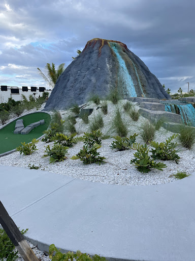 Saw a picture of this course in a news article and thought it would be fun and more attractive. Many of the greens were dirty despite being a newer place and many of the holes had lukewarm, gross, standing water in them that you had to stick your hand into to retrieve your ball. Many tripping hazards around the sidewalks with sudden 1-inch elevation changes in cement for no apparent reason. As others have stated, there are no benches, no shade, no neat volcano features, and the whole place comes off as very cheap and lame. There are many other fun putt putt courses, save your $36 for two people and go...