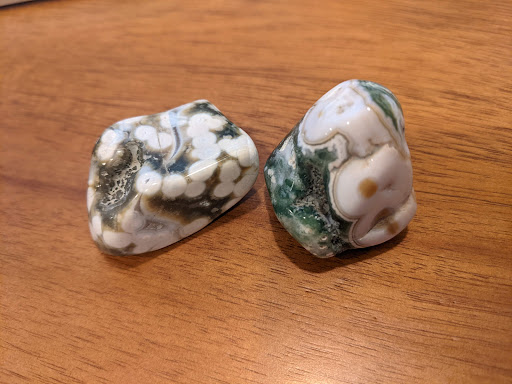 The shop has a good size selection of raw and polished stones, which Shan is proud to tell you is all ethically sourced. We've been going to rock shops for years (decades... yikes) in different parts of the country and can definitely say that Shan has new and rare stones that we've never seen before. She definitely knows her stuff too and can discuss the properties and uses of her collection from the mundane physical to the mystical.