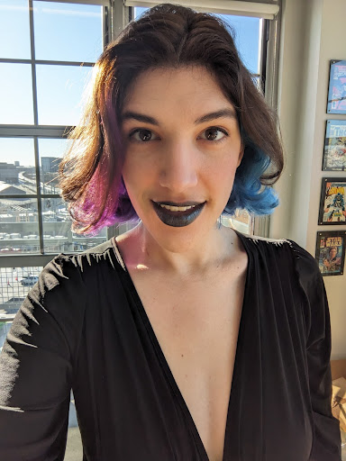 From there, she’s taken me on the most fun hair journey: 💙 Impeccably painted teal tips (seriously, getting a crisp line on platinum is next-level skill) 💜 A return to my natural shade, but with hidden purple and blue peekaboo highlights to keep things fun