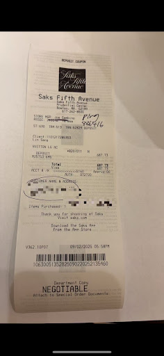 Damaged Customer Relationship: As a loyal customer of Saks for over seven years, I found this experience extremely disappointing. It reflects poorly not only on the associate but also on the Saks Fifth Avenue brand as a whole.