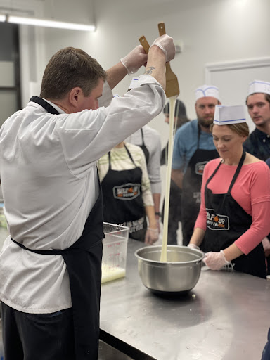 Between the two classes, I would choose to take John's class again. John was personable, knowledgeable and you could tell he was there to have a good time. I personally found the pace of the class and the quality of the food (that was prepared in advance) to taste better. The pasta sauce, Marsala sauce, and chicken were all perfectly seasoned and tender. The pace of food preparation by the class to eating time was great. John's sous chef and front of house help were amazing and kept things moving along, which I really appreciated. It was great to have a balance of participating/learning, but also feeling pampered by the chefs. The plating of the food looked as though you were eating in a restaurant which I thought was a really nice touch given the family style. The chefs made fettuccini to die for, and I really enjoyed the demonstration of how to make the Marsala sauce since I didn’t see that the first time around.