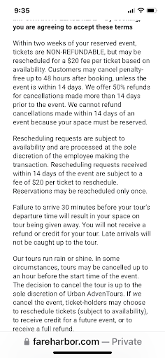 Read moreWe rented ebikes through their website for 5 days. The day before we left, we had a pet emergency and had to delay our trip by a day and a half. We left them know via email that we would be picking up the bikes a day late but would be returning them at the same time. They immediately charged our card $40 ($20 a bike) for "changing the reservation." We didn't want to change it, just pick them up a day late. When they changed our reservation, they just pushed it back by one day and kept it as a 5 day reservation. We didn't ask for a refund for the unused day, nor would we expect one but if you're charging $40 to change a reservation, maybe a 4 day rental would be appropriate. We did ask why the $40 charge and they were immediately defensive and said it was very clear on their rental page. It's not - see the attached picture. The policy that comes up with the rental does not talk about any charges for picking up a rental late. It does say they will charge $40 ($20 a ticket) if you want to change a TOUR. That makes sense and is fair.