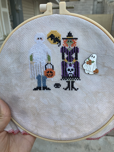 The classroom is situated in the back with no windows and no natural light yet there is plenty of light to work on cross stitch and quilting projects.