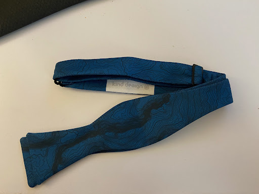 Read moreMy husband and I ordered a custom tie from Kind Designs for our wedding, featuring the Green River’s Labyrinth Canyon, a very meaningful location for us. We ordered the tie fabric swatch grid to pick out a color, which was critical to our decision-making, even if it was tough to narrow down with so many great color options. We settled on the color “Canyon” (only kiiind of biased by our having a canyon topo map image), and they helped us with a few rounds of digital prototypes for the layout of the map on the skinny tie. We were able to fit our favorite river features on the best parts of the tie with their help, and the final product was beautiful, complete with the coordinates of our original point printed on the back. Working with Kind Design was awesome, the tie was perfect for our wedding theme of topographic maps of the meaningful places of our life, and it was special to get to support a small local company where we live in Boulder, Colorado. We’d absolutely recommend working with them!