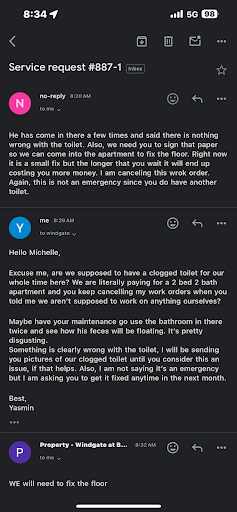 The most recent experience is calling 6 different times to have them fix our furnace that keeps switching on and off. They became upset and contacted "their attorney" because I requested that they come on the weekend as we were tired of arranging to be around for them during the week when we both work full time. When I said," they were failing to maintain the property, I was told "we came quickly every time and worked around your schedule" NOT true - the first time I called emergency maintainance at 130 am I was told," I'll be up there in the morning". When 945 am strolled around and no one had come - guess who had to call to see if they were even coming?
