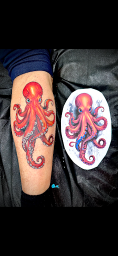 Read moreA little backstory I am 61 years old. I went to college in the 80s. I learned that if you had more than three tattoos, you were a sociopath so I was not on the radar for a tattoo However, I recently went to my Thanksgiving family dinner and realized all of my nephews had tattoos and it was time for grandpa to step up! So I decided on an octopus because I am an admirer of this species and orange is my favorite color so I set about to make it happen. I went down to the store. I talked with Brendon. He drew up several options for me and I picked one that was amazing. All of them were amazing actually. But the one that I picked was outstanding. And he delivered an amazing tattoo I cannot say enough for his artwork and his patience with me. It was as I said my first tattoo, so it was a little bit more painful than I thought it was going to be and also I put it on the back of my right calf, which I understand is also a painful spot, but I am 100% satisfied with the artwork and with the job that he did and I would highly recommend this guy if you are going to get a tattoo, It was an amazing experience and the day after I had my octopus finished I went ahead and got my second tattoo!! Don’t be a curmudgeon! Get it together and get your Tattoo...