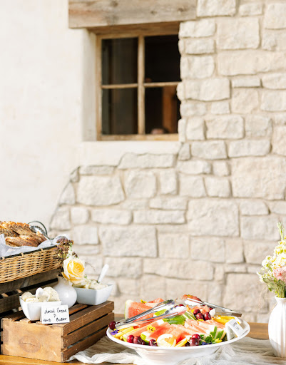 We worked with Sadie's Catering for our wedding at Firelight Farm in September and both the food and experience were genuinely perfect. Our guests (even the picky ones!) commented on how delicious the dinner and cocktail hour food was multiple times through out the night, which was such a great thing to hear. The cocktail hour presentation of the smoked salmon + cucumber, charcuterie, and stuffed mushrooms with sundried-tomato (Huge hit!) was something also particularly enjoyed (the whole smoked salmon fillet was beautiful) and made a few social media posts from guests! We had tri-tip with chimichurri and tuscan chicken for main entrees, and I can't honestly say which was better. The medium-rare tri tip was cooked perfectly and the chicken was moist and well seasoned. Salads and sides (grilled peach + Arugula, and potatoes + asparagus) were incredible too.