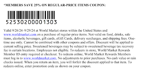 What an insane experience. I received a 25% flash sale coupon, and needed some filler art for the dining room. There is a blue textile art piece that fit the spot at World Market. After checking online to see that they had it (1 remaining in Bozeman, the site promised), we went to pick it up. Bizarrely, when checking out, the cashier said she needed to check to see if they "had more". This is a piece of art in a bin among many others up front, with no indicator that it is a "display piece" (this is not museum art, we're talking $150 here). Turns out, this one is the only one remaining (which is fine, as that is also what the website said and encouraged us to "pickup today"). She therefore... couldn't sell it to us? We asked to speak to an assistant manager. Who was remarkably rude and explained she "didn't sell her displays" and "I wouldn't sell that furniture over there". Again, fine, because we don't want furniture... we want this cheap piece of art. She told us that if she sold it, how could she sell it to someone else, and did we check online? Yes, yes, we did, which is why we are now in your store. How are you ever going to sell it to anyone, if you're not willing to part with it? There were no apologies and in fact she seemed baffled that we would expect to be able to purchase art. (Although we've done this in no fewer than five other World Markets without issue.) We had a similar issue in this store trying to purchase a lamp, which we found odd, but relented... and did try to order it online, but the order was cancelled. I think this may just be a dud of a World Market, but they can count our...