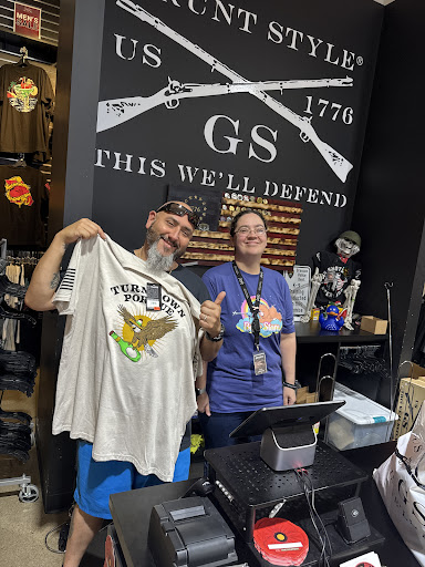 Ā Ā Ā Read moreGrunt Style in Branson is like stepping into a patriotic wonderland where 'Merica comes to life in fabric form! The moment you walk in, you're greeted by staff who are so friendly, they make your grandma look grumpy. The variety of t-shirts, hoodies, and hats will make you feel like a kid in a candy store ā if that candy store was filled with bald eagles, flags, and the spirit of freedom.