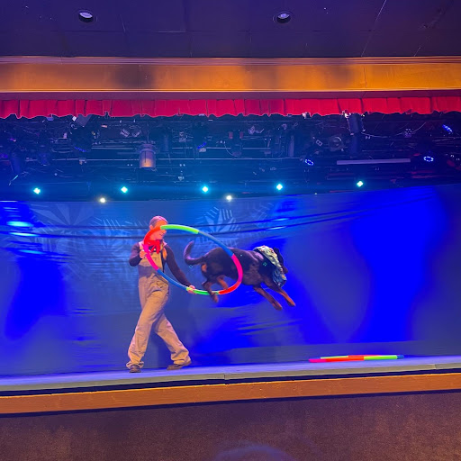 My family has been coming to Branson for 27 years. This show was our first experience with Grand Country. We were trying to find something entertaining for our 2, 4, and 7 year old. Upon arriving, the women working at the box office were not friendly. At first I brushed this off as they are human, but it definitely added to the overall experience (or lack there of). Once we were walking into the theater and getting seated the managers (I’m assuming) were friendly, and the performers came around to greet the kids. The show started out with an introduction of each performer. In the first 3 minutes of it beginning one of the performers said something along the lines of “the sexiest man on stage” (obviously a joke, but this was the wrong place for using the word “sexiest” or “sexy” as this is a show geared towards children). After this short intro they started with minigames for the children and asked for volunteers to come on stage. The first minigame was all about pooping and farting. There were a few more mini games, and then another themed around pooping where the kids played cornhole, but it was throwing poop bags into the toilet hole… I guess? I will say my 4 year old thinks pooping and farting is hilarious, but it was just weird considering we thought we were at a show that would mostly be about pets. My 7 year old started crying wondering where the pets were (some of the minigames had fake dogs and fake fish). We were starting to think not a single real animal would be seen. After 25 minutes they finally brought the first dog out. The dogs were great. He even grabbed the attention of my 2 year old immediately. If I remember correctly, another dog was brought out afterwards. But the dogs were only on stage for I believe 8 minutes. At this point I was holding my 2 year old behind the audience in the middle section and the manager came up to me and asked me to move because she was watching the show in the back. Not a big deal, just thought this was strange considering she works there. After this they announced an INTERMISSION which I thought was crazy considering we had barely even seen any dogs. We thought about leaving during intermission, but did not want to disappoint the kids and the other half of me assumed more animals would appear in the second half. The second half again began with more mini games. I think we were an hour and 15 minutes into the show when finally the dogs were brought out again. At this point my 7 year old and 4 year old were over all the “fluff” and filler games of the show and were having more fun in the bathroom so we left. Assuming the dogs remained on stage until the end of the show (that was an hour and 45 minutes long), the dogs were MAYBE out for 30 minutes, 15 minute intermission, and 1 hour of minigames.