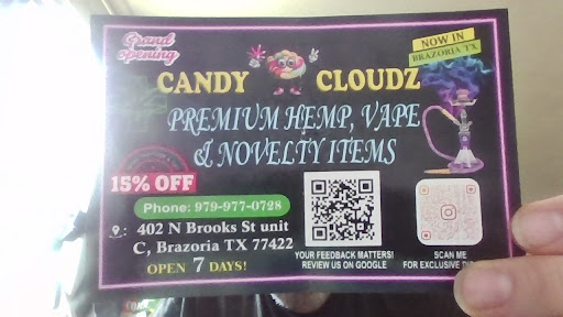 Candy Cloudz is exactly what Brazoria needed! I stopped in for the first time and was really impressed by the clean, welcoming vibe and the huge selection of premium hemp, vape, and novelty items. What really made it stand out, though, was the customer service. Mason, the guy behind the counter, was friendly, knowledgeable, and genuinely helpful. He took time to explain the different products and made sure I found exactly what I was looking for. It’s refreshing to see someone who actually cares about their customers and wants them to be happy with their purchase.