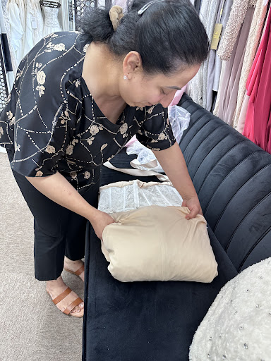Not only is she skillful in her work but she is also creative. Just days before my wedding we had to take my sisters bridesmaid dress in because my sister and my maid of honor got the same dress (I was hysterical) and we needed to do something to make it different. The thoughtful and creative process of layering the lace flowers over the dress made it unique, unlike any other. My sister didn’t even like the dress originally when she bought it, but now she loves it due to the creative alteration.