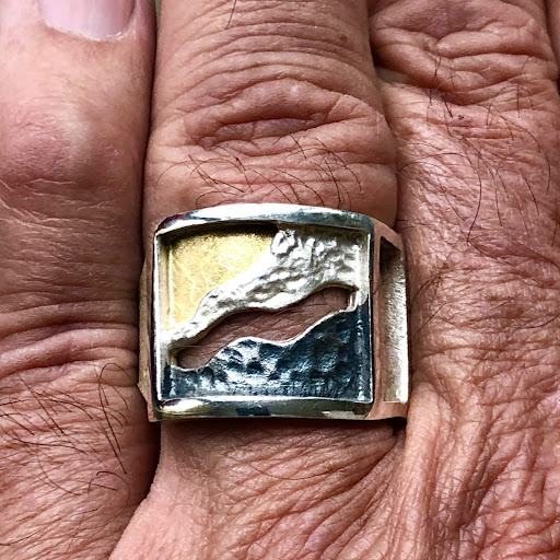I spent a lot of time looking around for a mens ring I liked. I didn't have a big budget. I was looking for a ring that said "Breckenridge" to me. I looked for a very long time and I found exactly what I was looking for (see photo)