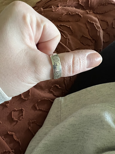 Now my husband, he needed a custom ring made because what he wanted, Al explained it wouldn't be able to get stretched. My husband is also 6"7 and his ring size is 16. So my husband showed him a picture of this tire ring he loved (he's a car guy). The original picture had a tarnished tire ring with blue. The blue was a must for my husband along with the tire look and Al suggested putting blue sapphire going three quarters around the ring. Al took his time and created a custom ring that my husband was blown away by. He absolutely loves it and showed all his gear head friends that were amazed how cool it looked.