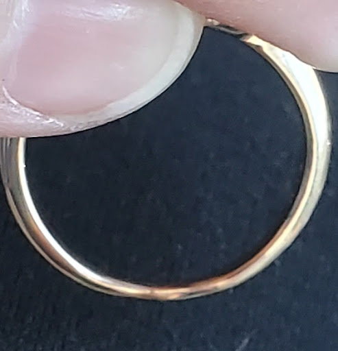 After some more waiting, they rudely handed me the ring back (now somewhat gold again), and the dents were even worse! And somehow in that time between, the inscription inside my ring saying āMy Loveā was taken off. Presumably they quickly polished the inside again and simply forgot. After complaining again when the ring was handed back, I had 3 of the Brentwood Jewelry workers belittle me, specifically one man who raised his voice at me and waved me off, and I didnāt feel safe nor did I trust them to hand back my ring again. At this point I just wanted my diamond out of there and away from their hands.