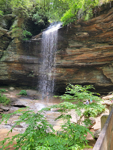 Read moreModerate hike up to the falls. Easy pathway and stairs along the path. Bring a towel, at this fall you can stand under or behind the fall in a mountain cove. Smaller natural pools under the falls for the little ones. Parking is along side the road next to the bridge that takes you to the path to the falls. So many great...