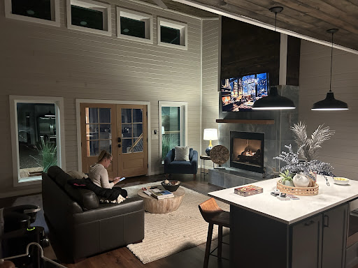 The hosts, Shayla and J.C., thought of every little detail. Because we were celebrating our wedding anniversary, there was a bottle of local wine and chocolates in the kitchen, plus rose petals leading up to the bed, decorated with towel swans. The TV "fireplace" was on when we arrived, which created a warm, welcoming vibe, as soon as we walked in the front door.