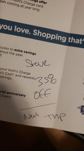 Scott the Manager needs to be demoted or retrained on customer service I am a new shopper to Kohl's so I don't know how the rewards or how kohl's cash work I spent 347.00 that night plus opened a Kohl's credit card after I payed for my Items it with a different card I was told by the Manager Steve that I could have 35% off my next trip and to come back on Monday April 5th to pick up my other Items that (Steve) was holding for me which was all name brand shoes and I could use the Kohl's cash I received from the 347.00 purchase I made plus get 35% off my next trip so that is what I did came to the store on Monday to pick my Items up that was put on hold only to have to deal with Scott who don't know how to speak to a customer he was very short didn't want to hear what I had to say the cashier at check said she had to get the Manager approval to give me the 35% off that is how Scott got involved first he said no I'm not doing that then when I tried to tell him that Steve said that I could have it off and he wrote it on my credit card paper he gave me he took out his phone to text Steve and I was still talking to him and he put his phone up and said can text him with a ATTITUDE I knew then he was mad so I stood there waiting for him to get a response after the response he walk over and just took a picture of the paper I had laying on the counter next to me that had the 35% off next trip that Steve wrote and walked away he didn't say anything to me so I was still waiting on a response after all of that he comes back with a bigger ATTITUDE and said Steve said he never said that but I'll give it to you I said is this his hand writing he said I said I will give it to you then Scott got even more mad cause he had to take the 35% off each Item never speaking to me again no have a nice evening or anything and it sad that this type of behavior was seen by 2 of his workers that work under his supervision and was on store camera I left that store very upset not happy with what just happened a shopping trip that should have been 15min ended up being almost an hour đ˘ I will never shop this store again NEVER want to look at Scott evil face again SHAME on you Scott...