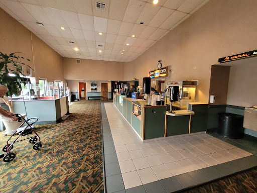 I've been going to theaters all my life, all up the west coast and now here in the south. We drove 40 minutes from where we love now to come see a movie here, while the staff were friendly, concessions were good, the bathrooms were acceptable, the #4 auditorium (where we had watched the movie we were there to see) had a damaged screen, it didn't "ruin" the movie, but with how much we paid (60.00$ approx.) for 3 to come see a movie here, with a large popcorn and a large soda, it would be nice to not see damages to the screen, also the floors were sticky, like they needed to be cleaned, there was some popcorn on the floor ( just a few pieces) from the last showing that no one cleaned up, the seats are outdated and smell bad. Im not hard to please, I don't consider myself to be someone who demands perfection, but we spent 60 dollars for my family of 3 to watch a movie there after driving for 40 minutes to get there, and its the first movie theater I have ever been to that smelled bad, was sticky, and outdated with a damaged screen. They seemed to care about upgrading their p.o.s. or computer systems because we had to select the seats we wanted on a computer screen which was weird, usually you just get your ticket and figure out where you are going to sit when you get into the auditorium, if I could have chose, I'd have moved back one seat, but I felt like if I had done that we would get in trouble maybe? But yet the screen being damaged and the lack of cleanliness seemed to be put on the back burner. I'd really like to make a point to go to the movies with my family every month, but we may find a different theater thats more updated and comfortable. One thing I will also say that was good about this one is that they had great air conditioning! I WOULD go back here if they were showing a movie I wanted to see that I couldn't find somewhere else, but if I can find the movie at a nicer theater, even if I have to drive an extra 30 minutes, I will. Comfort, cleanliness, and a good screen are just a huge "must" in any movie theater in my opinion. I hope and pray the management of Regal will see this review and will address these issues so we, and everyone else around town (and from out of town) can come enjoy all our family...