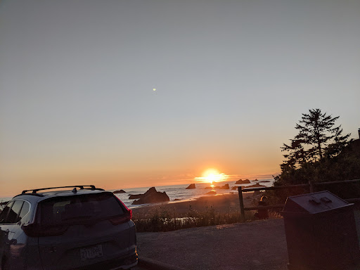 Decided to pull down and park to eat breakfast overlooking the beach. There were several people out, some were blowing bubbles, others set up for beach volleyball. It was going well until I went to the bathroom before we were gonna head out and some local came up and started yelling at my husband for parking in the spot next to him (even though it was the only spot when we pulled in). The man then proceeded to get naked in the parking lot, changing out of a wetsuit, while still mumbling under his breath about a 15 minute parking limit (there were no signs about a parking limit) even though he had been parked there way longer...