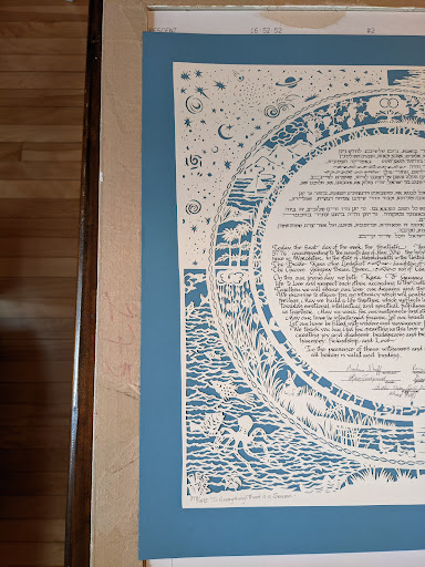 The Ketubah we received is not squarely mounted on the blue background and the exterior edge is not cut straight as shown in the picture. My husband reached out regarding our concerns - we were told to purchase a matte that would cover the blue edge of the Ketubah and told that the imperfections we referenced are part of the design and should be expected. To say that we are disappointed is an understatement. For the price paid, one would expect that such basic asks (ie straight exterior edge, square mounting) would be met, and, unfortunately, these defects really detract from the beautiful design of the interior of the Ketubah. Perhaps more disappointing, however, was the response that we received when we did reach out and an overall unwillingness to assist us further.