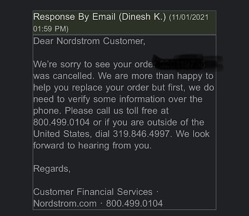 Read moreIn store experience with Sabeen was wonderful. She was extremely helpful and assisted me with ordering Chanel perfume. The store was sold out of the size that I wanted however, she informed me that if I ordered via the link sent my phone, the perfume would ready for pickup the following day. I went to Nordstroms in Christiana mall the following evening to pickup perfume. After waiting for roughly 30 minutes to find out what was going on with the order, I was informed that there was issue with King of Prussia shipping the perfume to Christiana. However, the kind young man made me aware that the perfume would arrive the next day to Christiana. I made him aware that I lived an hour & 45 minutes away and to return the next day is an inconvenience. I asked to have perfume shipped my house since I had already wasted time by going to Nordstroms and the perfume was not there. He said yes, we can ship it. I then asked if I could have it overnighted as I was really anticipated to have the fragrance before leaving the store, he said yes. I understand things happen. However, I received a call from Bridgette this evening informing me that overnight shipping is $20 which will need to be paid in order to ship the fragrance. I explained to her yesterday’s inconvenience hence the reason I requested overnight shipping. She proceeded to say that shipping needs to be paid if I wanted the order overnight. So I asked to return the product and for a refund as this is horrible customer service. I work in the customer service industry, when mistakes are made, we make it right. Not hassle the customer for more money to...